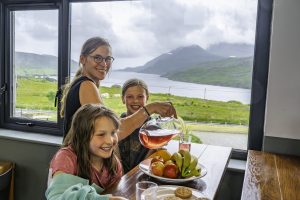 Enjoy hearty, homemade meals served in our bright dining room with breathtaking views over the fjord. Our licensed bar also offers a selection of wine and beer.